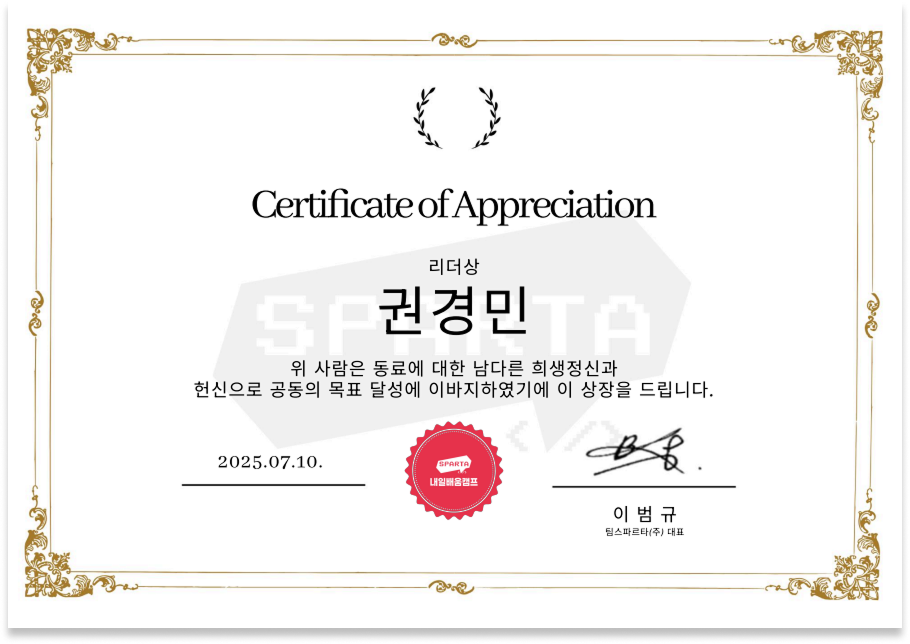 어려운 취업 상황 속에서도 고군분투하는 여러분들이 스파르타클럽을 통해 원하는 바를 실현할 수 있는 한 해가 되기를 진심으로 기원합니다.