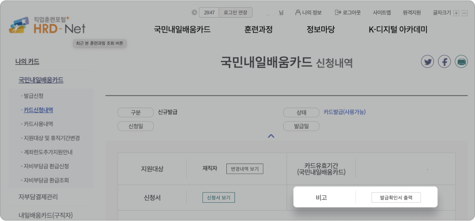 을 들고 지정 은행에 가면 [내일배움카드 받기] 완료!